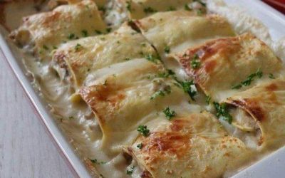 Lasagne arrotolate con prosciutto e funghi Ingredienti (per 10 involtini) 5 rettangoli di pasta fresca 500 g di funghi 3…